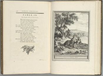 The 1776 four volume Fables choisies: mises en vers includes plates, and as a rare book must be pre-ordered for use in the Library's Heritage Collection Reading Room