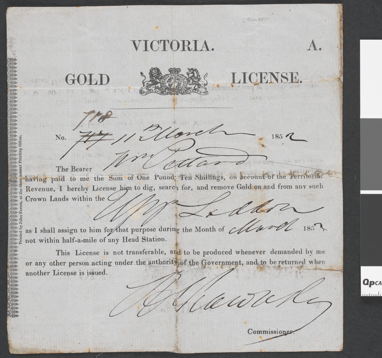 Most miners' rights and licences have not survived to the present day. There is no central index to surviving miners' rights or licences. A very small number of rights and licences are held by the Library, local historical societies, museums and individuals.